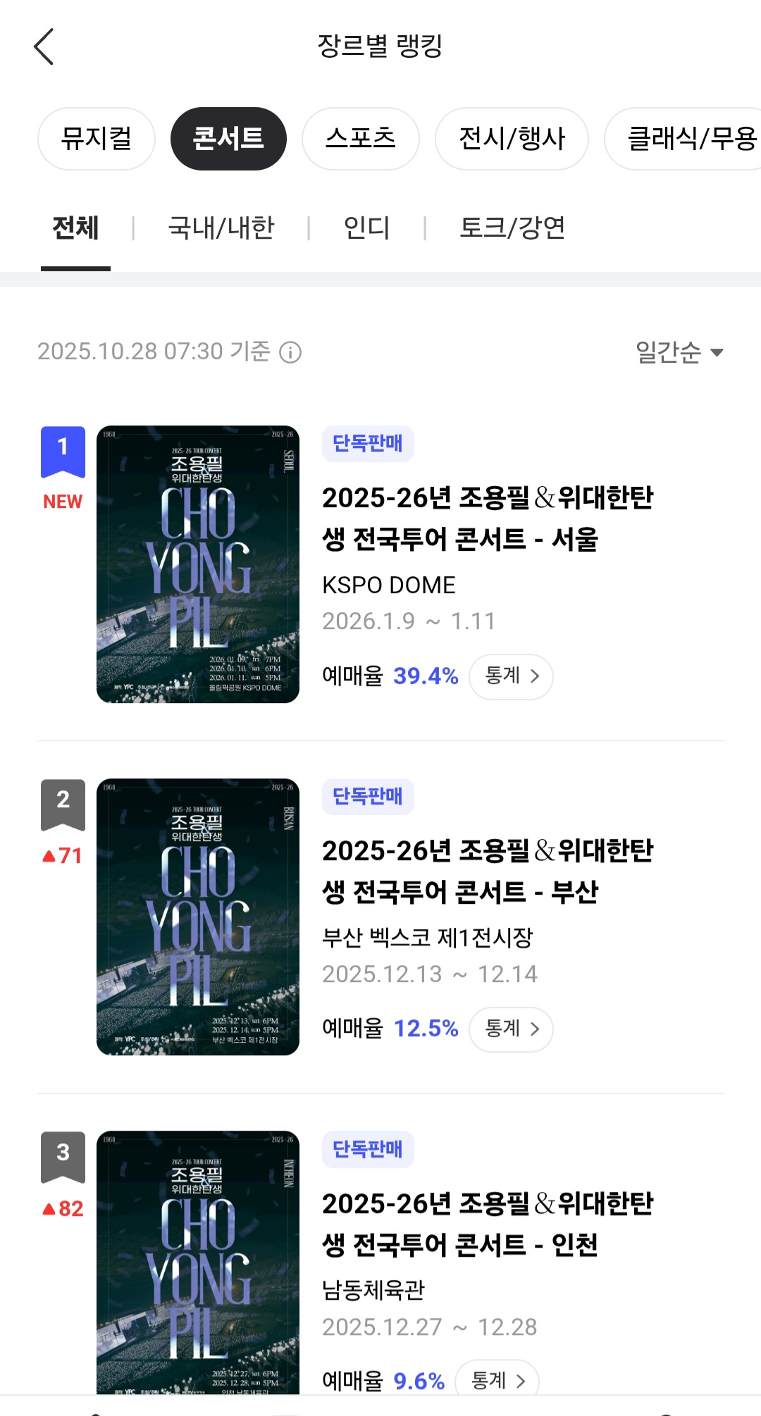 서울 3일 공연 매진입니다.