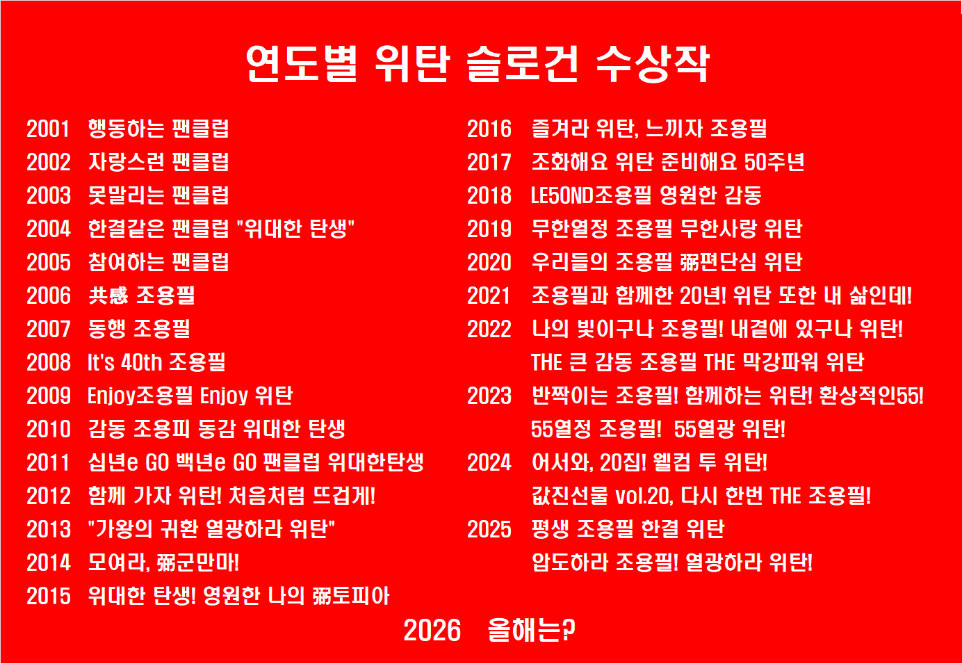 2026년은 조용필 사랑해(조용필 사랑의 해 라는 의미)