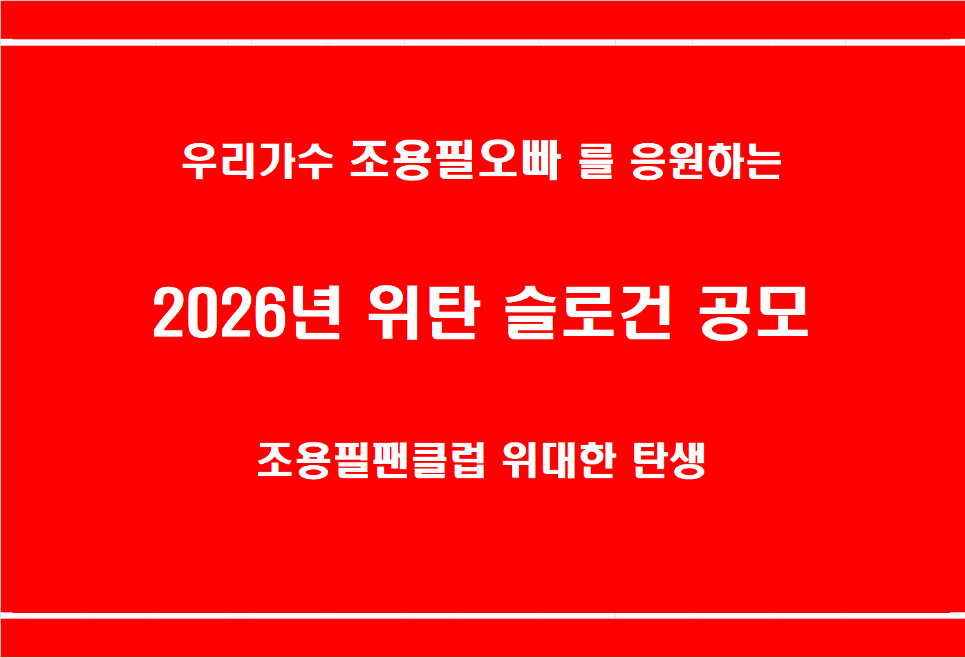 공연장에서 오빠모습 보셨죠? 더 젊어지시고 더 유머러스해지신 오빠를 떠올리며 2026년 한해동안 위탄의 길잡이가 될 멋진 슬로건~ 센스있는 슬로건~ 많이많이 올려주세요.