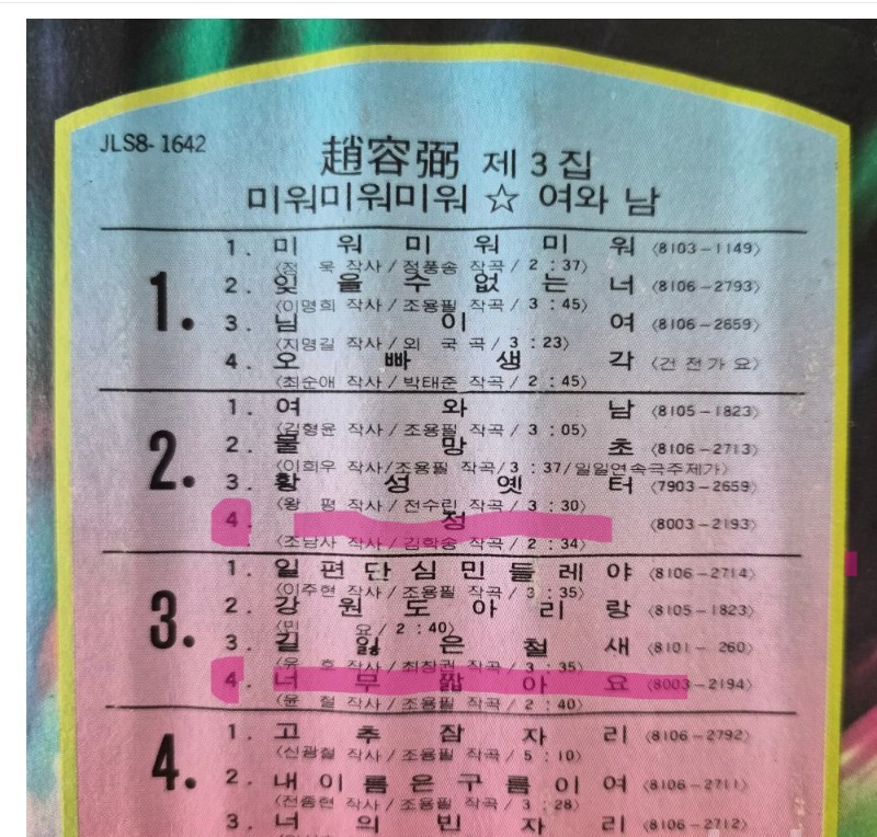 수록곡들을 보니까 4곡씩 4곡씩 그렇게 8트랙 테이프인가 보네요.